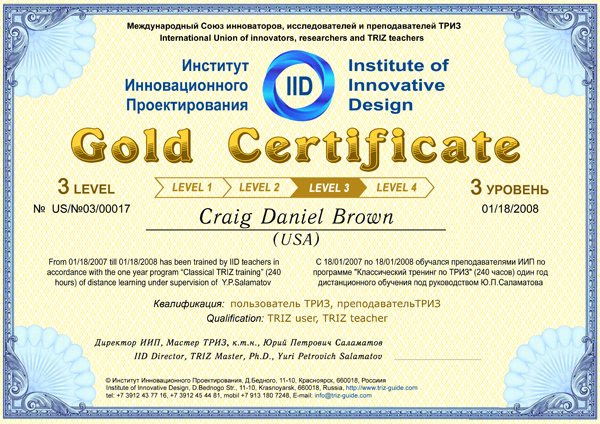 Certification tasks approved by International union of innovators, researchers and TRIZ teachers