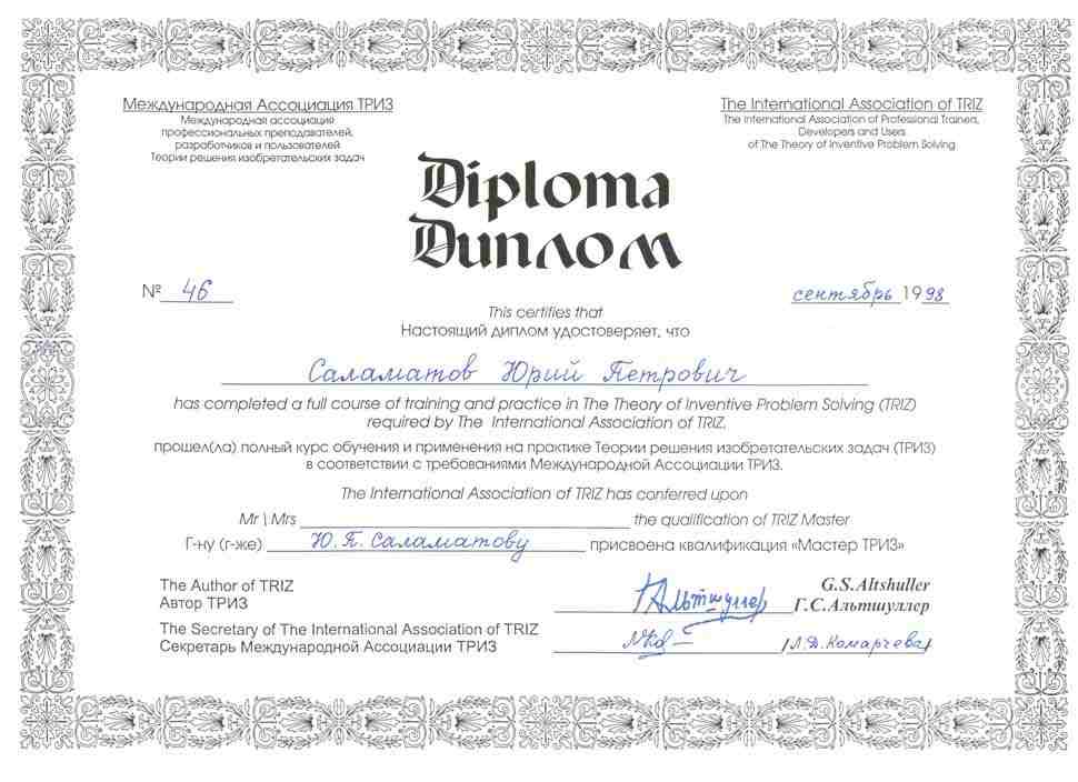 Certification tasks approved by International union of innovators, researchers and TRIZ teachers