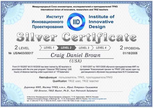 Certification tasks approved by International union of innovators, researchers and TRIZ teachers